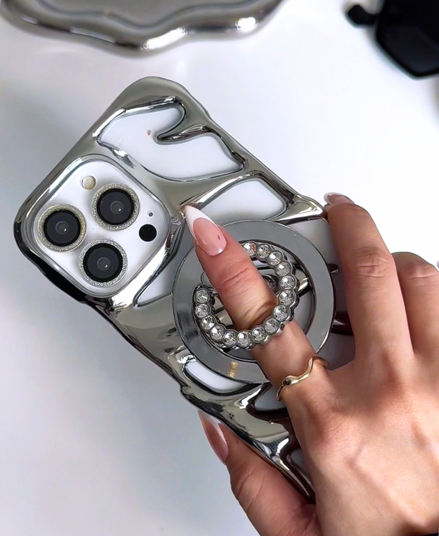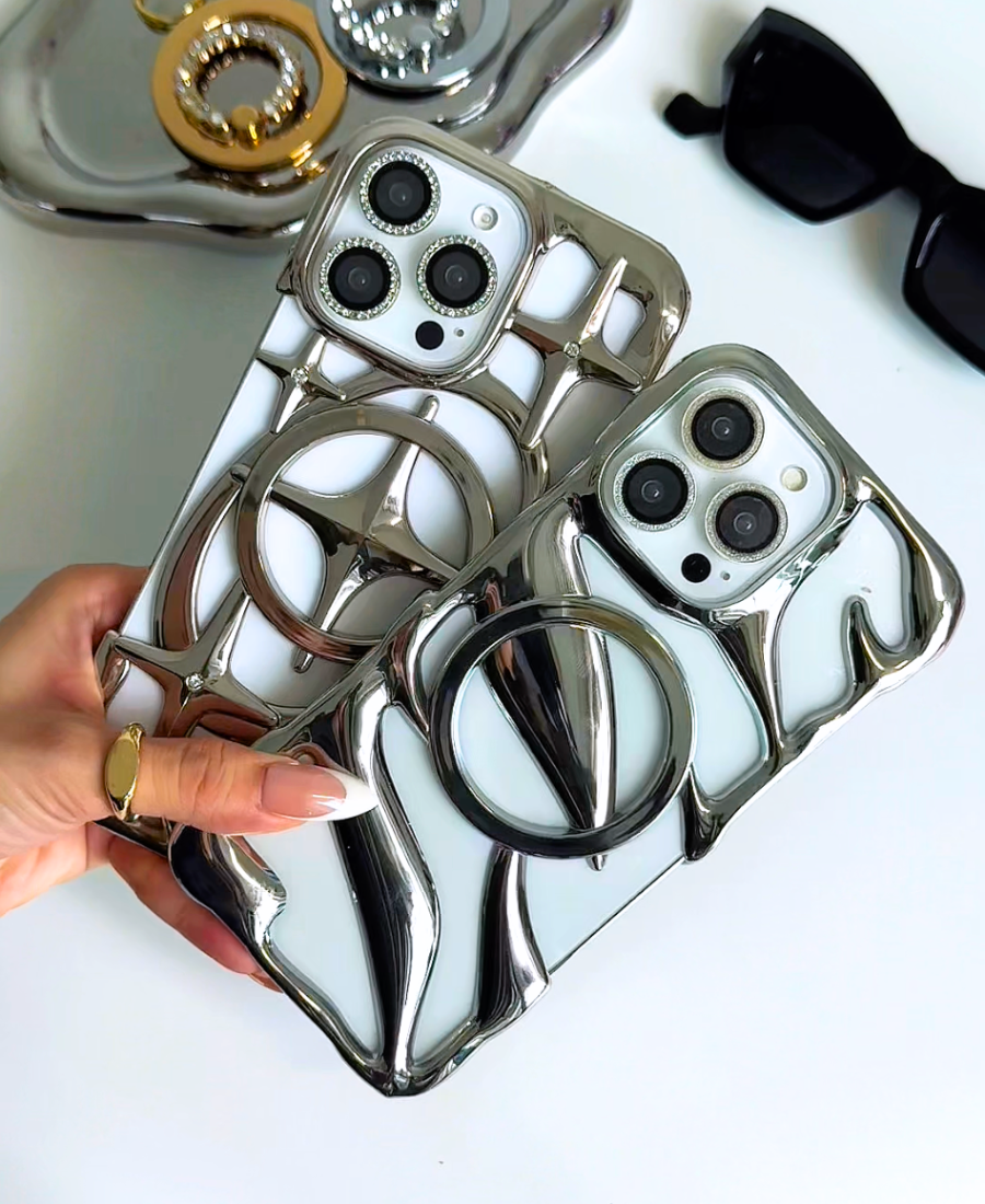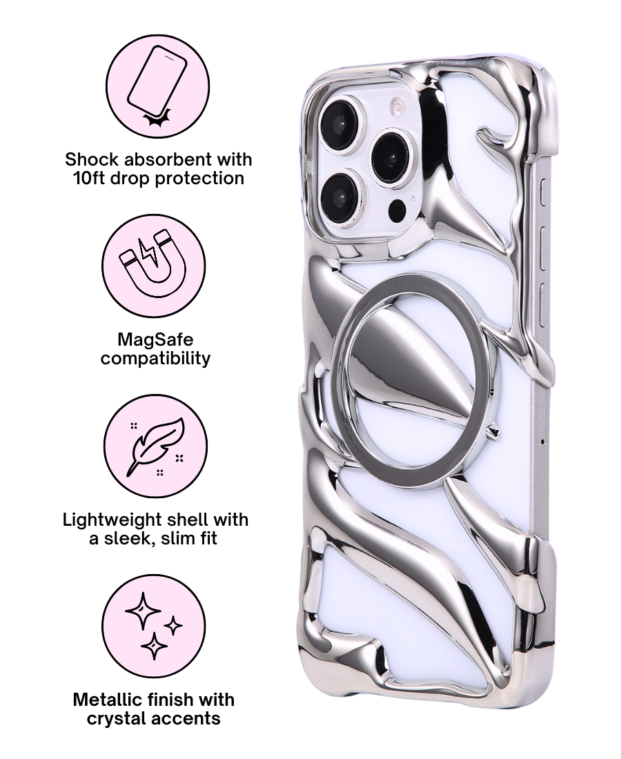 Say goodbye to bulky, boring cases! New MagSafe Bumper Case with a minimal one-of-a-kind design that showcases your iPhone without sacrificing protection. Featuring a metallic finish and crystal detailing to steal the spotlight!
